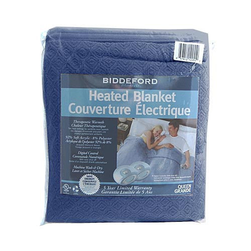 Biddeford Blankets understand the importance of combining safety, comfort, quality and style. Today we use those principals along with the latest technologies to bring you products that warm your body and soul. Biddeford Blankets products are crafted with unique fibers and special blends to produce a high quality Heated Blanket, Heated Mattress Pad, and Heated Throw. This blanket features jacquard diamond weave made from 92% soft acrylic and 8% polyester. The digital controller features 10 heat settings for therapeutic warmth with auto shut-off. The blanket also saves energy, is machine washable and includes 5 year limited warranty.