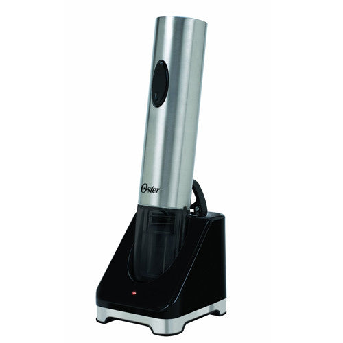 Entertain guests with little effort and plenty of panache with the sleek, stylish, and sophisticated Oster FPSTBW8215 Deluxe Electric Wine Opener in Stainless Steel finish. This is must have entertaining gadget will remove a wine cork from the bottle in seconds with a touch of a button. The stylish stainless steel finish will compliment your other kitchen appliances and look great when displayed on your counter or table-top. The semi-transparent base of the unit allows you to watch as the cork is effortlessly removed from the bottle. A separate recharging base ensures convenience and mobility of the opening unit. Designed to fit all traditional wine bottles and also includes a foil cutter to quickly remove seals.